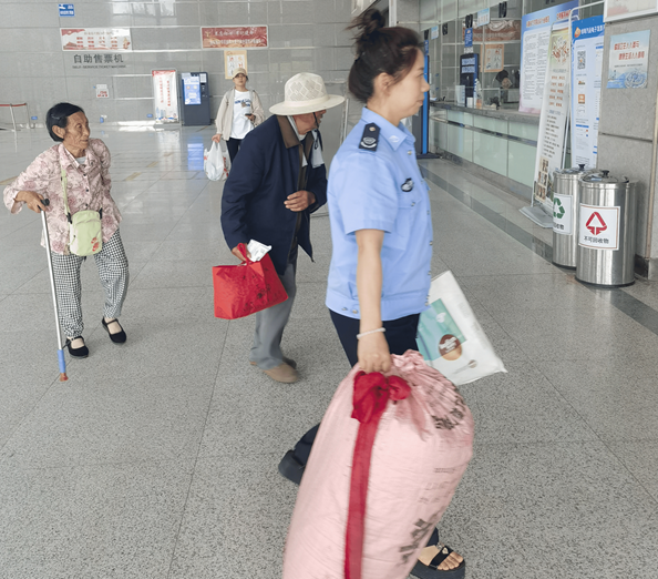 炎夏的一天,綜合客運站售票廳內(nèi)兩位腿腳不便、不停翻找行李的老夫婦引起了站務一班班長陸娜的注意,詢問后得知:外出探親準備返程時發(fā)現(xiàn)身份證和錢包都找不到了。陸娜立刻購買了車票,幫著把行李拿到候車室候車,耐心安撫焦慮情緒,直至聯(lián)系上家人說明情況,確定好接站時間才放下心來。當老人家屬打來電話說已安全到家,并想來表示感謝時,陸娜婉言謝絕:“這是我們應該做的。”